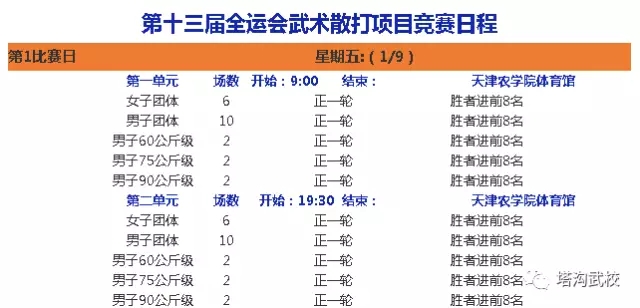 9月1日至4日,全运会武术散打比赛将进行为期4天的激烈角逐,希望河南(塔沟武校)散打队奋勇拼搏、再接再厉,同时祝愿他们赛出水平、再创佳绩,为河南赢得金牌和荣誉。