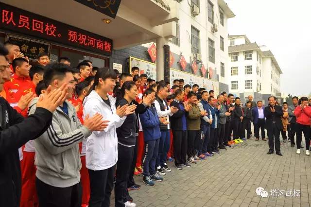4月7日上午九点,塔沟武校新校区内彩旗飘飘、气氛热烈,由塔沟武校代表的河南省散打队在出征全运会预赛前回到学校,重温历史,砥砺前行。