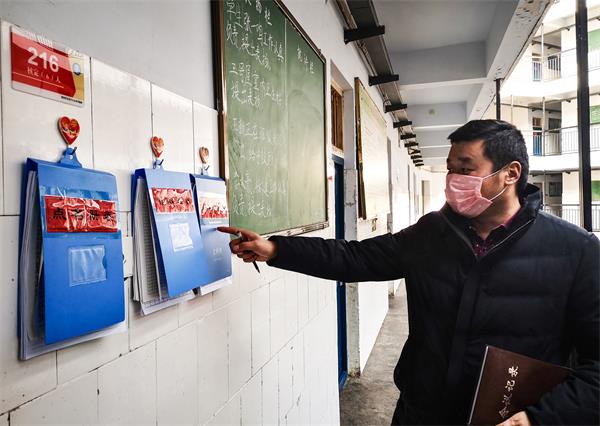 2月7日下午,塔沟武校大禹校区竞训处的李青稞,正在逐个检查学生宿舍的消毒及通风情况,一个个门窗敞开的房间内,处于启动状态的消毒灯闪烁着蓝色,叠放的被褥整整齐齐地放在床上,待仔细检查过这个宿舍后,他又走进下一个房间,并不时在笔记本上记录着需要纠正的地方。