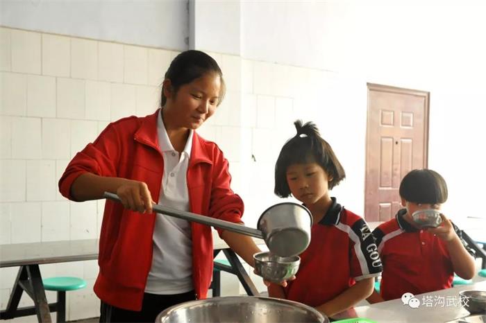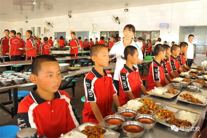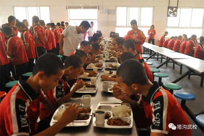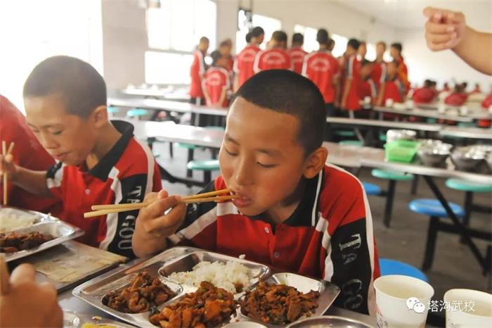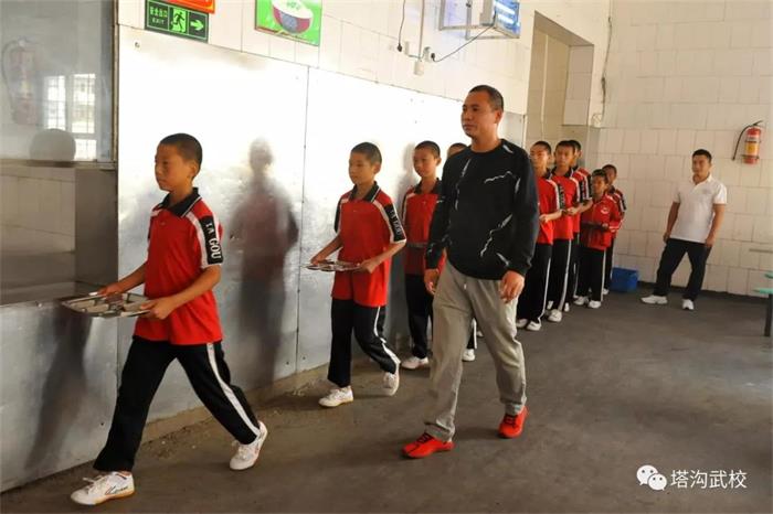 老师和教练仍然是排在孩子们之后吃饭,今日的他们也依旧挨个检查学生们的饭菜,就餐人数虽多,但在教练们熟练的维持下,餐厅的秩序井然有序。