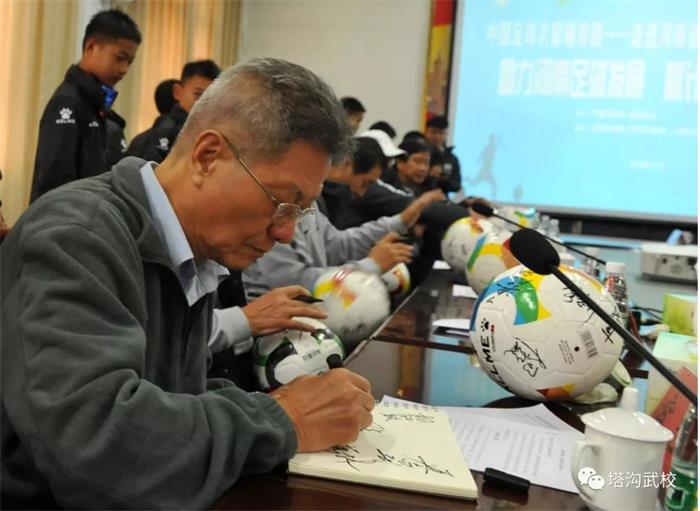 王俊生、容志行、戚务生、迟尚斌、李应发、杨礼敏、李惟淼、李晓光、孔建华、马林、范运杰,这些名字想必在喜欢足球的国人心中可谓如雷贯耳,平素只能在录像中一遍遍回味他们在绿茵场上雄姿,然而在今天上午,塔沟武校足球班的孩子们不但与这些为中国足球做出巨大贡献的名宿们坐在一起畅聊足球,同时还收到了这些和蔼的爷爷们亲手签名的足球作为礼物,这怎不令孩子们兴奋?