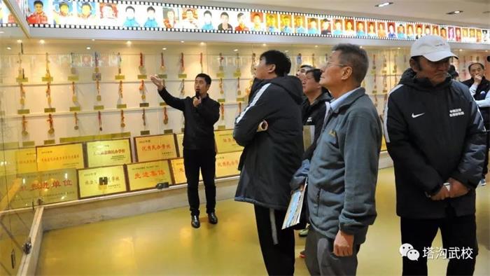 随后,在塔沟青少年少林足球训练基地青训教练员团队的陪同下,辅导团一行参观了集团历史展览馆,对集团在奥运会、亚运会、青奥会中为国家做出的贡献表示钦佩,并祝福塔沟武校继续培养出更多的世界冠军出来!
