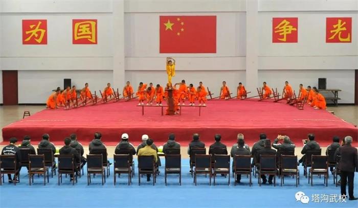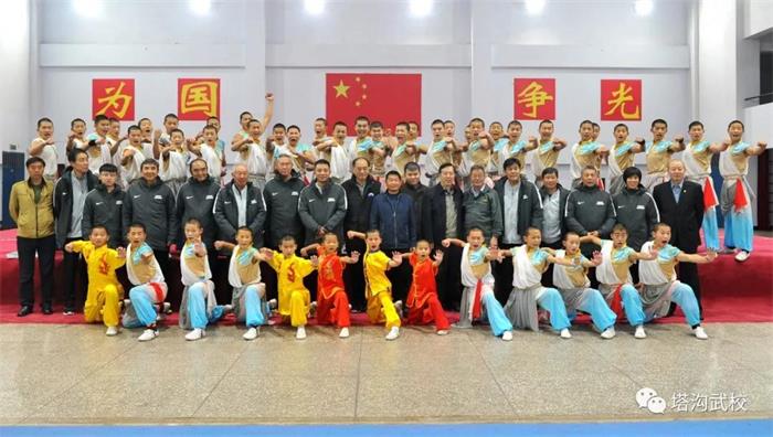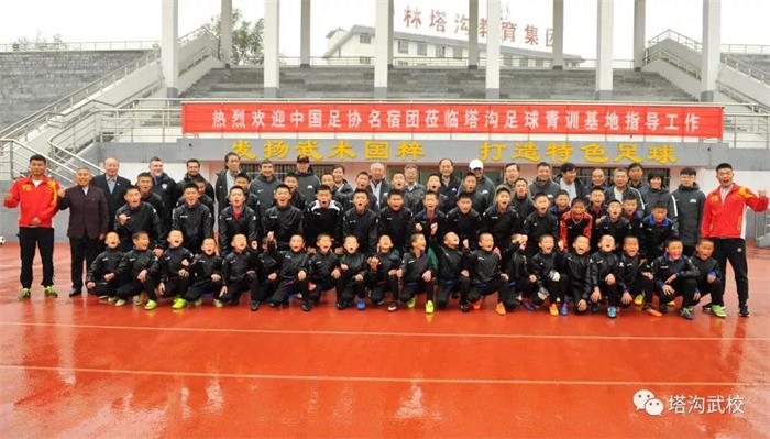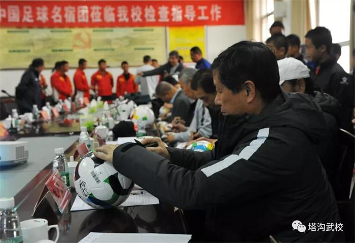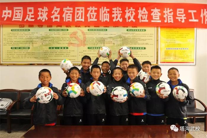辅导团一行首先观看了塔沟武校艺术团功夫小子们精湛的武术表演,对孩子们在这么小小的年龄就练出一身武艺交口称赞,不时拿出手机记录下功夫小子们的精彩瞬间,演出结束后仍意犹未尽的拉着小家伙的手询问,并将大家精心挑选出来的足球训练教材和联合签名足球赠与塔沟武校,并与大家合影留念!