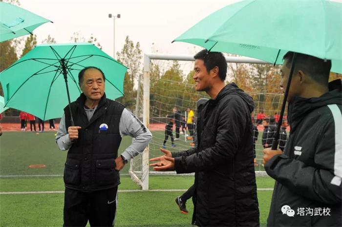 虽然天空下着小雨,但孩子们的足球与武术训练并没有停下,相反因为这些名宿们的到来而愈发的兴致高昂。足球训练场上,辅导团一行一边听着基地日常的训练计划介绍,一边仔细观察孩子们的训练状态,当听到孩子们整齐响亮的问候“爷爷好”时,这些白发苍苍的老前辈们露出了开心的笑容,纷纷驻足观看场上学生们的训练,并在小阶段训练完毕之后走到孩子们身边仔细询问训练的内容,还兴致勃勃的鼓励同学们要坚持下去,早日成才。