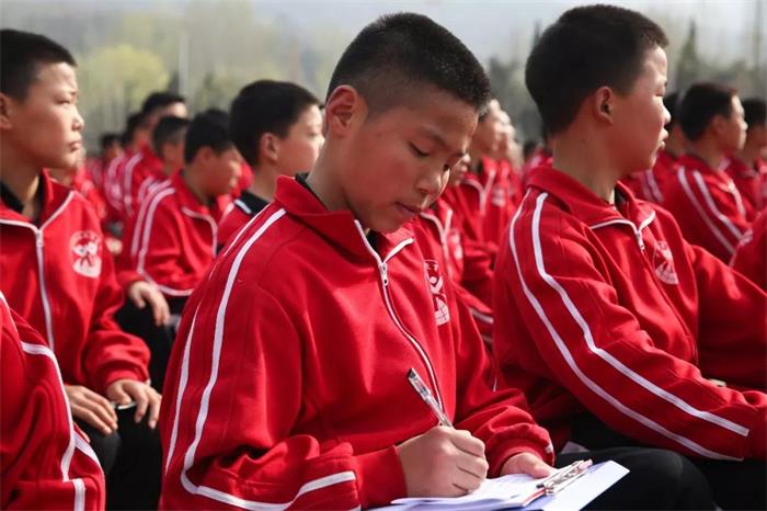 申警官的话语深入浅出,没有照本宣科的读稿演讲,而是以互动的形式让师生全部融入进来。与学生互动时,他就一些未成年人高频触发类案件提问场下学员,同学们的回答有理有据,让申警官不断叫好,屡次说到“塔沟武校的法制教育搞得好,大家的法律知识相当全面”,而这完全得益于塔沟武校每年都要开展三到四场法制教育课。