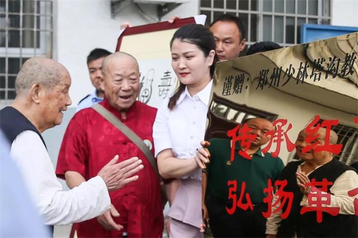 多年来,少林塔沟教育集团一直坚持传承红色文化和党的引领。早在1937年,塔沟武校创办人刘宝山的父亲刘景文,就曾以500名少林拳师为骨干,在登封城关帝庙成立嵩山少林武术抗日救国会,并提出“宁做枪下鬼,不做亡国奴”的爱国口号,一时间在密县、巩县、伊川、临汝、禹县、新郑等9县发展会员数万之众,有力的支援了以皮定军司令为首的豫西抗日先遣队。刘宝山也深受其父的爱国思想影响,6岁时就参加了抗日儿童团,多次出色地完成了向豫西抗日先遣队传递情报的光荣使命。
