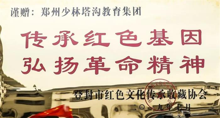 7月8日上午,登封市红色文化传承收藏协会会长王万顺、登封红色文化传播者梁光印等一行十余人来到塔沟武校,在建党98周年和建国70周年之际,特别为学校创办人刘宝山先生赠送牌匾、《毛泽东选集》、奖章、荣誉证书等物品,以此表达多年来塔沟教育集团一直支持和传承红色基因、并致力于传播红色文化的感激之情。