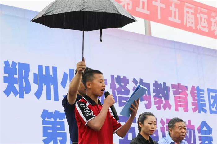 少林塔沟教育集团法定代表人兼武术总教练刘海科主持运动会开幕式,集团董事长刘海钦在会上致开幕辞。最后,集团创始人刘宝山先生宣布运动会开幕。
