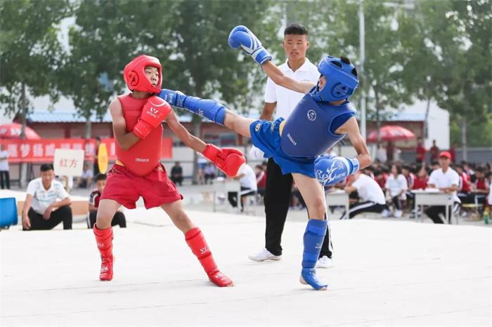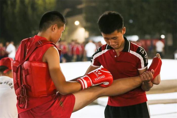 散打专业是塔沟武校的拳头项目,因此也聚焦了许多朋友们的目光,下过苦功的选手在场上踢打摔技术全面,往往既能打出非常精彩的动作,也能控制住距离轻松取胜。