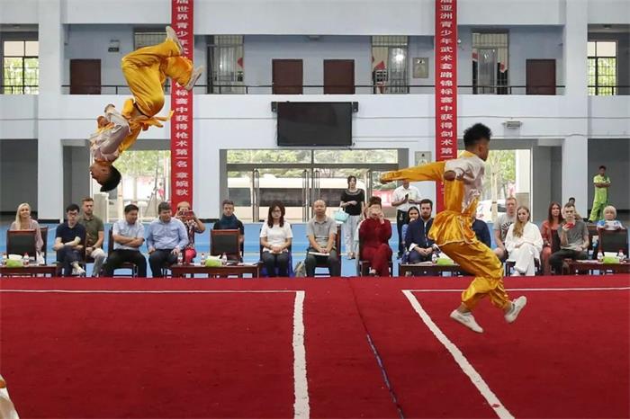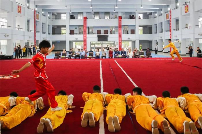 8月27日上午,俄罗斯青年联盟副主席塔季扬娜·谢莉维尔斯托娃一行在团省委副书记武皓、团省委统战部部长韩冰、团市委书记王保卿、团市委副书记刘少楠的陪同下,参观河南少林塔沟武术学校,实地观看了功夫小子们精湛的武术表演,并在教练一对一的指导下,练习少林武术,亲身体验中华传统武术的魅力。