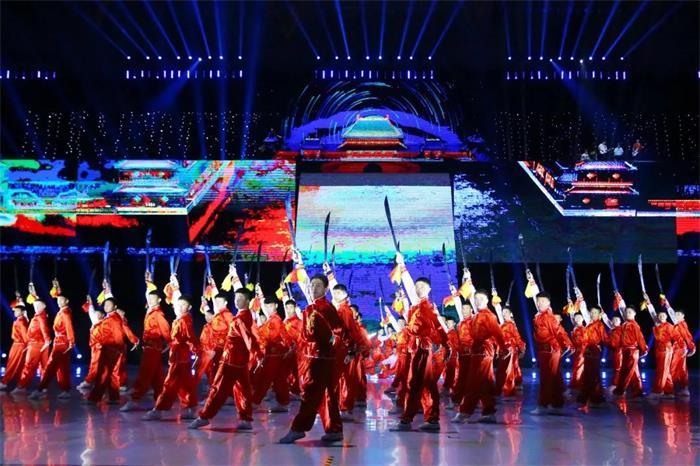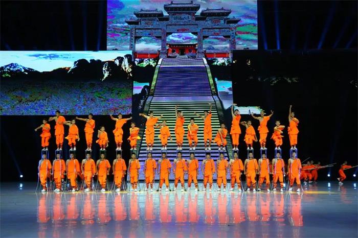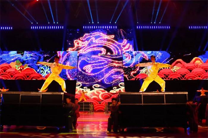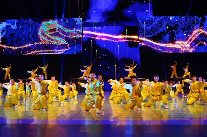 当屏幕上慢慢浮现巍峨的万里长城时,场面壮观大气,此时塔沟小子一套动作整齐紧凑的少林拳尽显国人刚猛霸气,仿若在向世人重现习武之人保家卫国的博大胸怀与气概,一度让整个场馆陷入沸腾的海洋中。