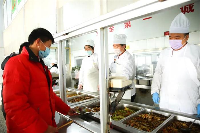 消毒消杀工作是这段时间所有人都要做的事,而对餐厅来说更是首当其冲的一项大事:厨师的体温是否异常、碗筷是否彻底消毒、就餐区域有没有消杀到位等等,虽然看着繁琐,但是每一项都要彻底落实,而伙委会乔会锋、苏运龙两人每天也要不定时地到餐厅进行督查数次,甚至一待就是几个小时。