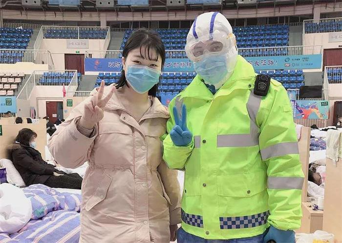 隔离不隔情,服务暖人心。方舱医院里,厚厚的防护服和口罩下,患者看不清姜海涛和同事们的容貌,但贴在防护服上的“武汉公安”字样,让患者分外亲切和安心。