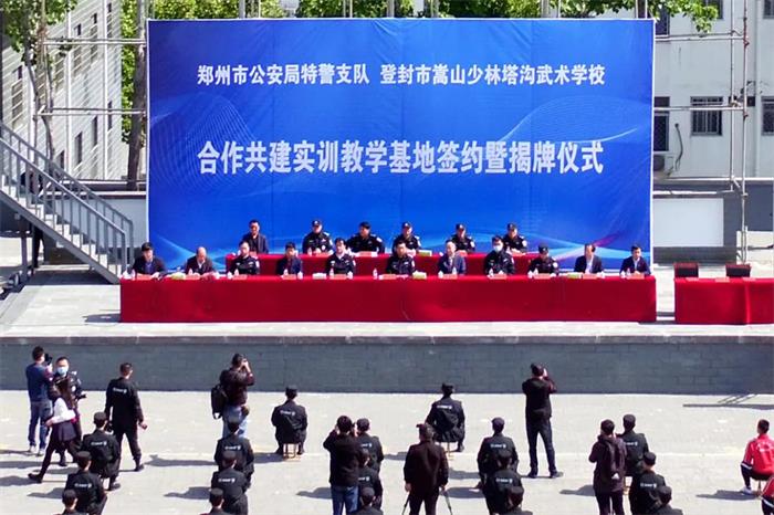 郑州市公安局特警支队与塔沟武校签约 合作共建实训教学基地 4月25日上午,郑州市公安局特警支队与塔沟武校合作共建签约揭牌仪式在登封塔沟武校五环演武场举行。郑州市副市……