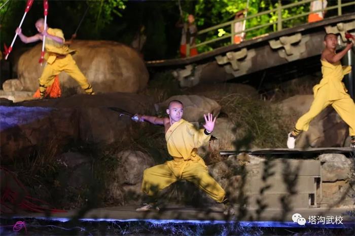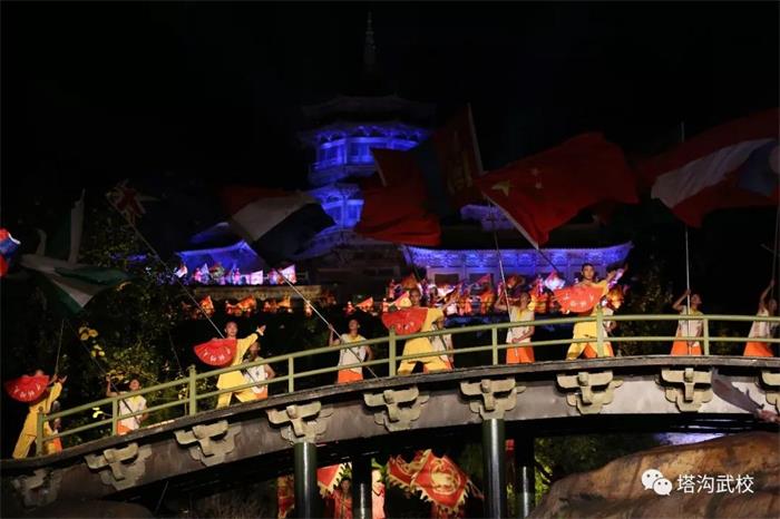 伴随着10、9、8、7的倒计时声音,一道道唯美的绿色光束瞬间在音乐大典两侧山峰上呈现出阿拉伯数字,由塔沟武校900余名学员参加演出,用灯光和少林武术打造而成的第十二届郑州国际少林武术节闭幕式正式上演。