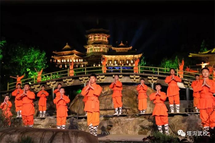 “哇,太漂亮了”观众席上不断发出惊呼声。开场节目中,塔沟武校800余名学员身着僧服,装扮成少林铜人集体习练七星拳、六合拳等;而一帮年幼的武僧,在舞台的前方表演少林传统绝技童子拜佛、罗汉睡觉、朝天蹬、燕式平衡等,将少林传统拳术的韵味体现的淋漓尽致。