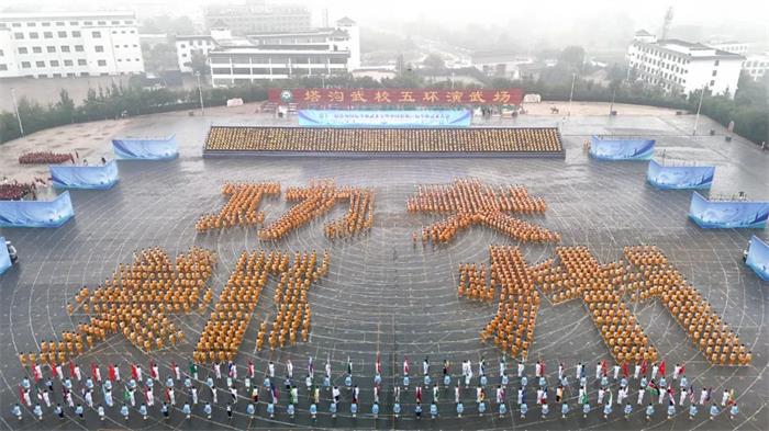 八百名塔沟小子组成武术节开幕式“背景墙”